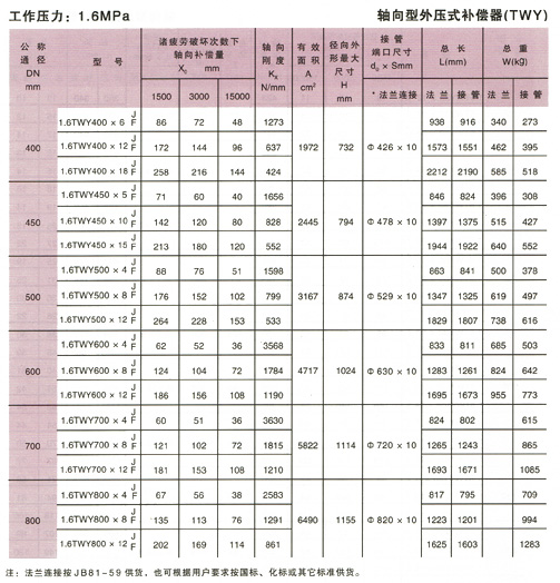 軸向型外壓式波紋補償器(TWY)參數(shù)6
