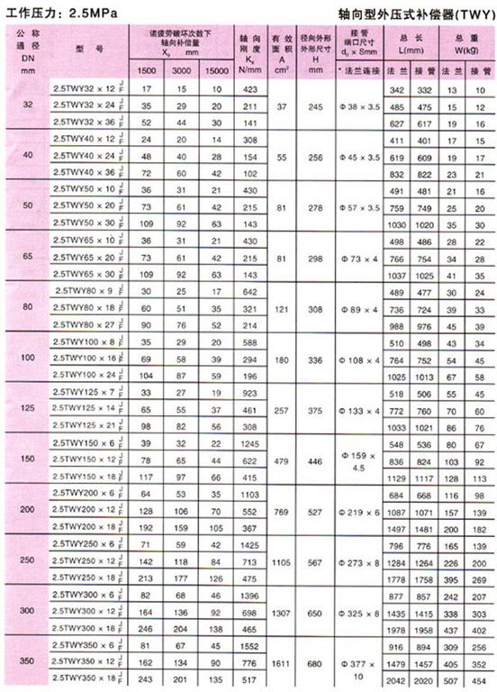 軸向型外壓式波紋補償器(TWY)參數(shù)7