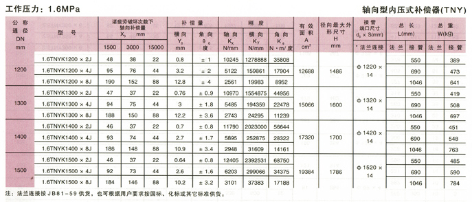 軸向型內(nèi)壓式波紋補償器(TNY)參數(shù)14