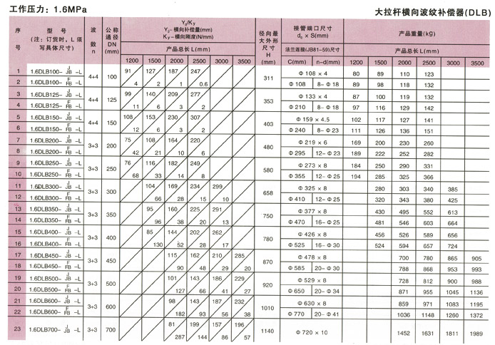 大拉桿橫向波紋補(bǔ)償器(DLB)參數(shù)5