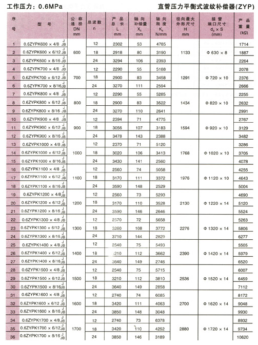 直管壓力平衡波紋補償器(ZYP型) 參數(shù)1