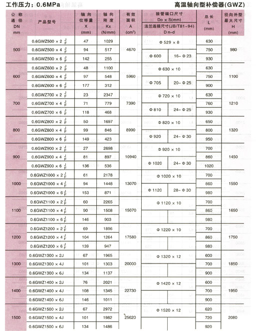 鋼鐵水泥行業(yè)高溫波紋補(bǔ)償器參數(shù)3