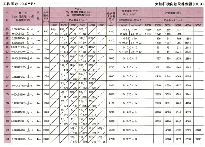 大拉桿橫向波紋補(bǔ)償器(DLB)參數(shù)2