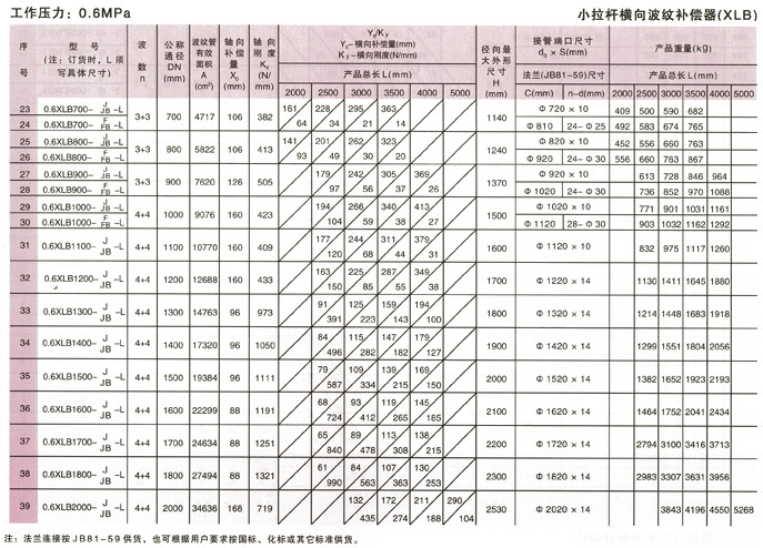 小拉桿橫向波紋補償器(XLB型)產(chǎn)品參數(shù)2