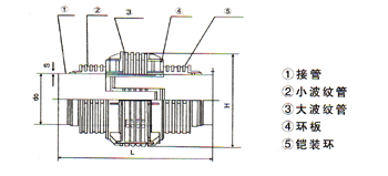 表示公稱通徑為500,工作壓力為0.6MPa,大波紋管為8個(gè)波,小波紋管為16個(gè)波,連接形式為不銹鋼接管連接的直管壓力平衡式波紋補(bǔ)償器。