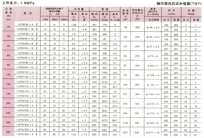 軸向型內壓式波紋補償器(TNY)參數(shù)12
