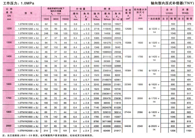 軸向型內(nèi)壓式波紋補償器(TNY)參數(shù)11