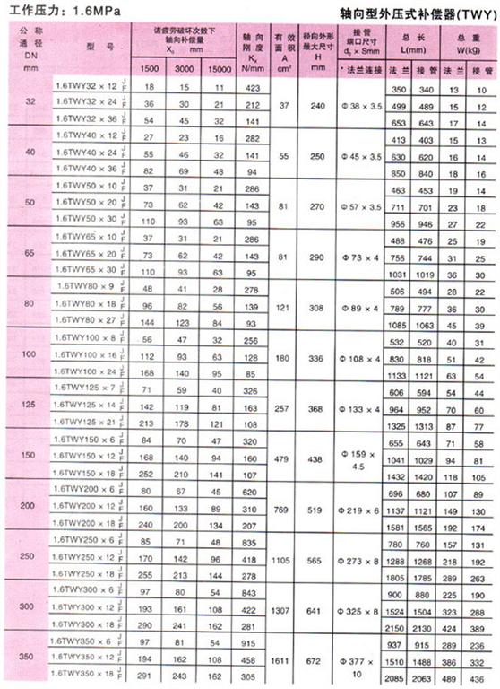 軸向型外壓式波紋補償器(TWY)參數(shù)5