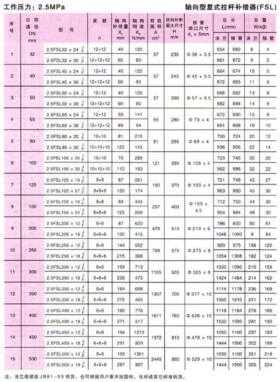 軸向型復(fù)式拉桿波紋補(bǔ)償器(FSL型)參數(shù)4