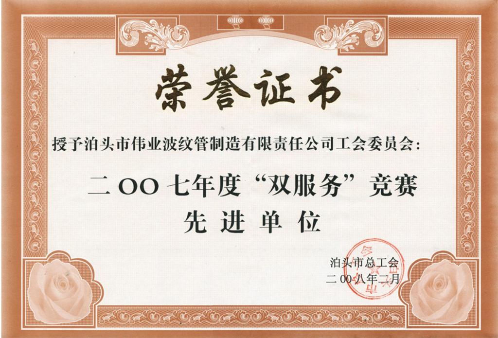 河北偉業(yè)波紋管公司雖然榮獲了許多的榮譽和獎項,但是我們深知這些榮譽和獎項是客戶給予河北偉業(yè)公司的信賴和支持,公司領(lǐng)導經(jīng)常教育我們面對榮譽要不驕不躁,時刻把客戶放在_位,嚴把質(zhì)量關(guān)。相信河北偉業(yè)波紋管公司在這樣的領(lǐng)導班子帶領(lǐng)下_會邁向新的臺階。